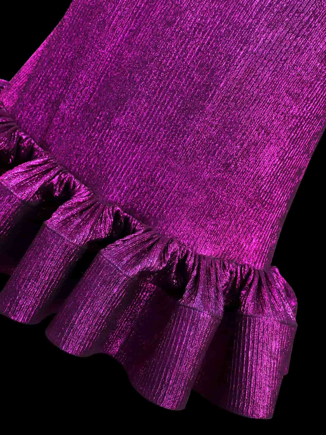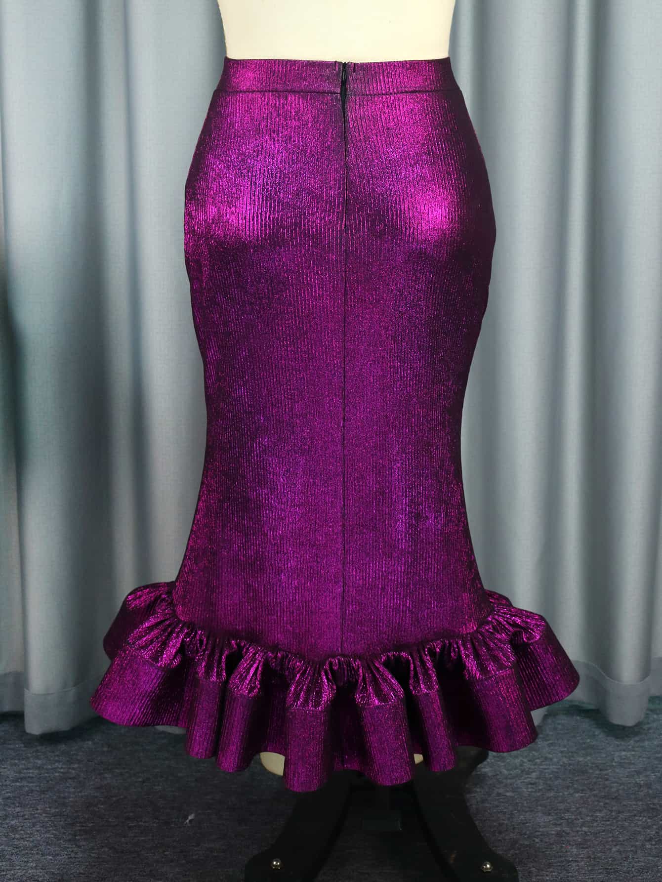 Elastic High Waist Large Size Shiny Bronzing Ruffles Ankle Length Skirts for Ladies.